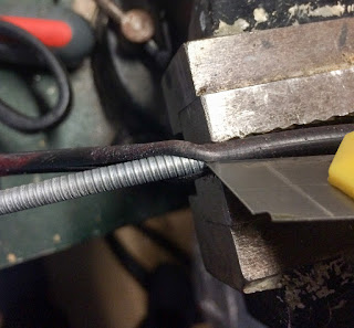 Fiz uma camada reforçada na parte do manípulo, para tentar que não se solte novamente, e lubrifiquei o cabo interior com massa consistente.